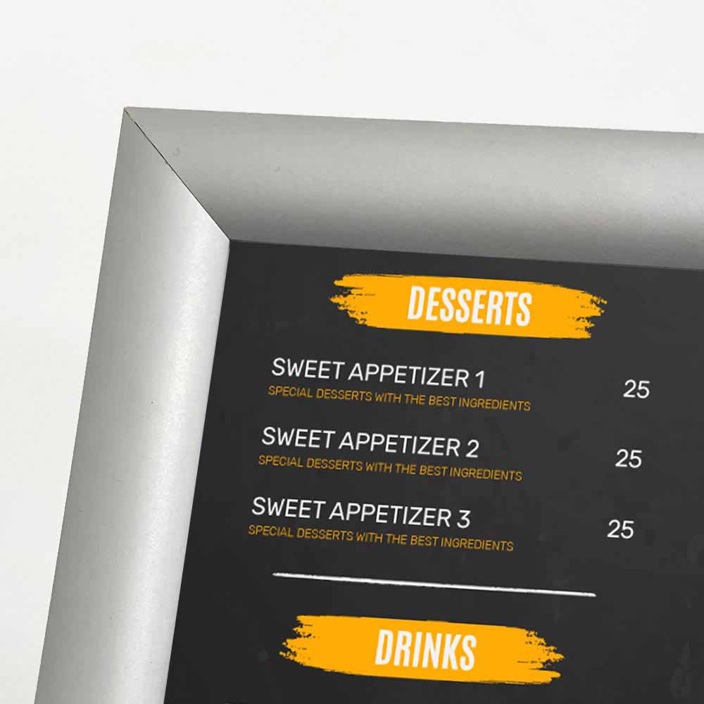 Denna modell kombinerar större format med vridbar funktion för flexibel informationshantering. Lämplig för miljöer där budskap behöver synas tydligt på avstånd.