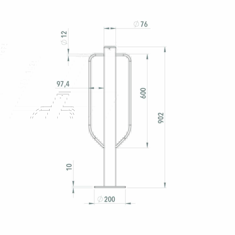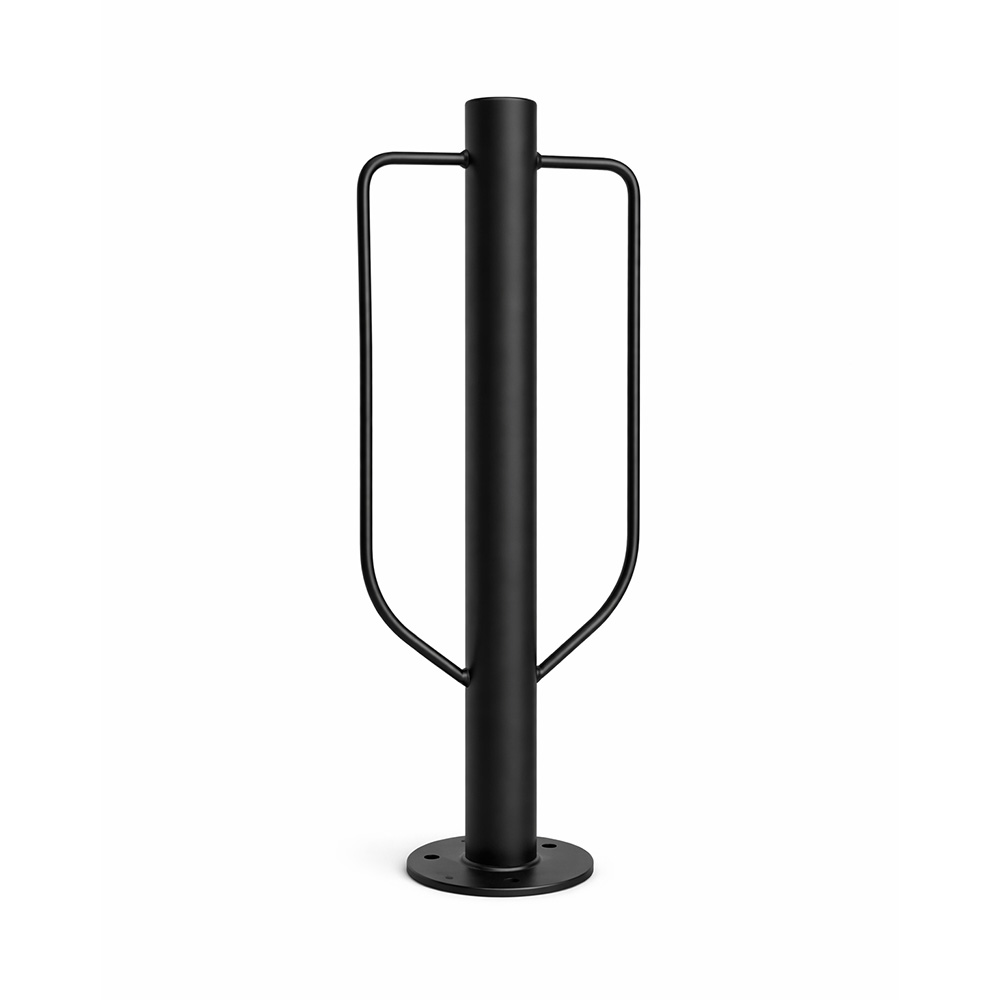 Stabil cykelpollare för projekt i offentlig miljö, bostadsområden och företagsfastigheter. Modellen är avsedd för ytmontering och levereras med fastsvetsad markplatta för säker förankring i hårdgjorda ytor. Konstruktionen möjliggör fastlåsning av två cyklar.
