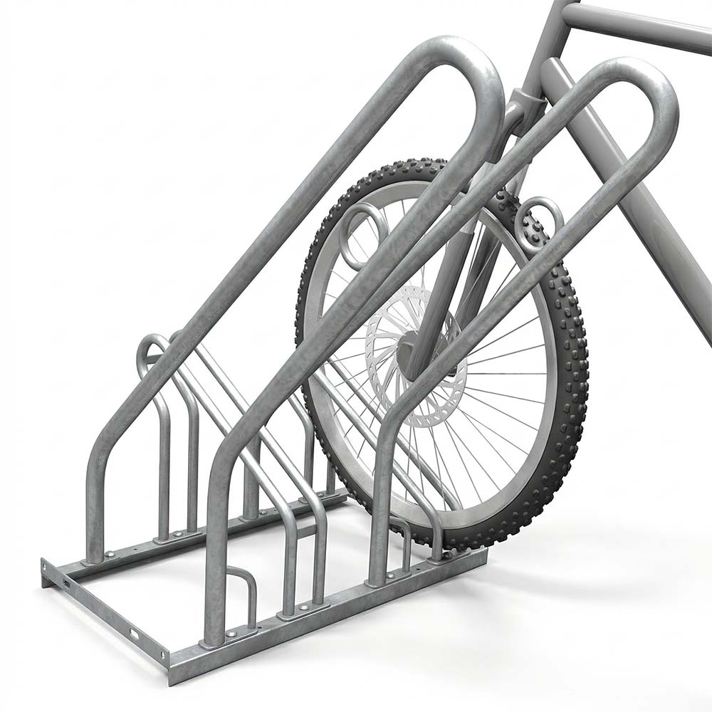 Modell 250 är tillverkad av varmgalvaniserad stål för att ha lång hållbarhet. Det är också förberett för markmontering samt erbjuder hög- och låg parkering med 350 mm mellan hjulbågarna för att spara plats. Våra hjulhållare har utrymme för däck med en bredd på upp till 55 mm, detta gör att vårt cykelstativ passar till många olika cyklar som exempelvis landsvägscykel, mountainbike, damcykel och många andra modeller.