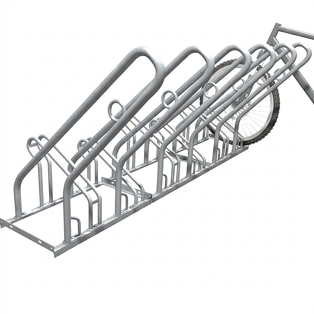 Cykelställ 6 platser med låsbygel - Modell 250 är ett galvat cykelställ med stöldskydd. Detta är en av våra mest efterfrågade modeller till offentlig miljö eller områden där risken för att cyklar blir stulna är stor.