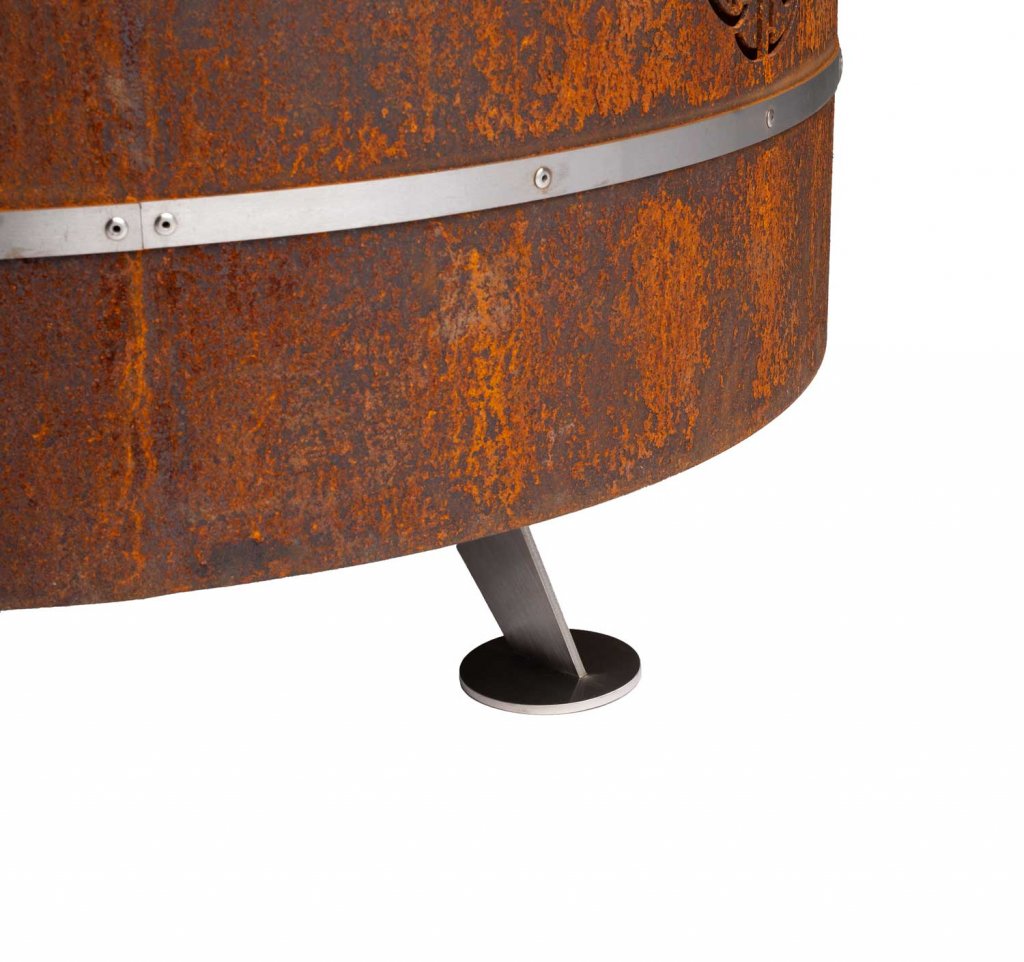 OBS: Produkten får inte placeras på ytor av trä eller andra brännbara material eftersom eldstaden blir för varm nedtill när man gör eld. Eldstaden har hål i botten där de kan falla ut små kolbitar och föra ut vatten så att eldstaden inte samlar upp vatten.