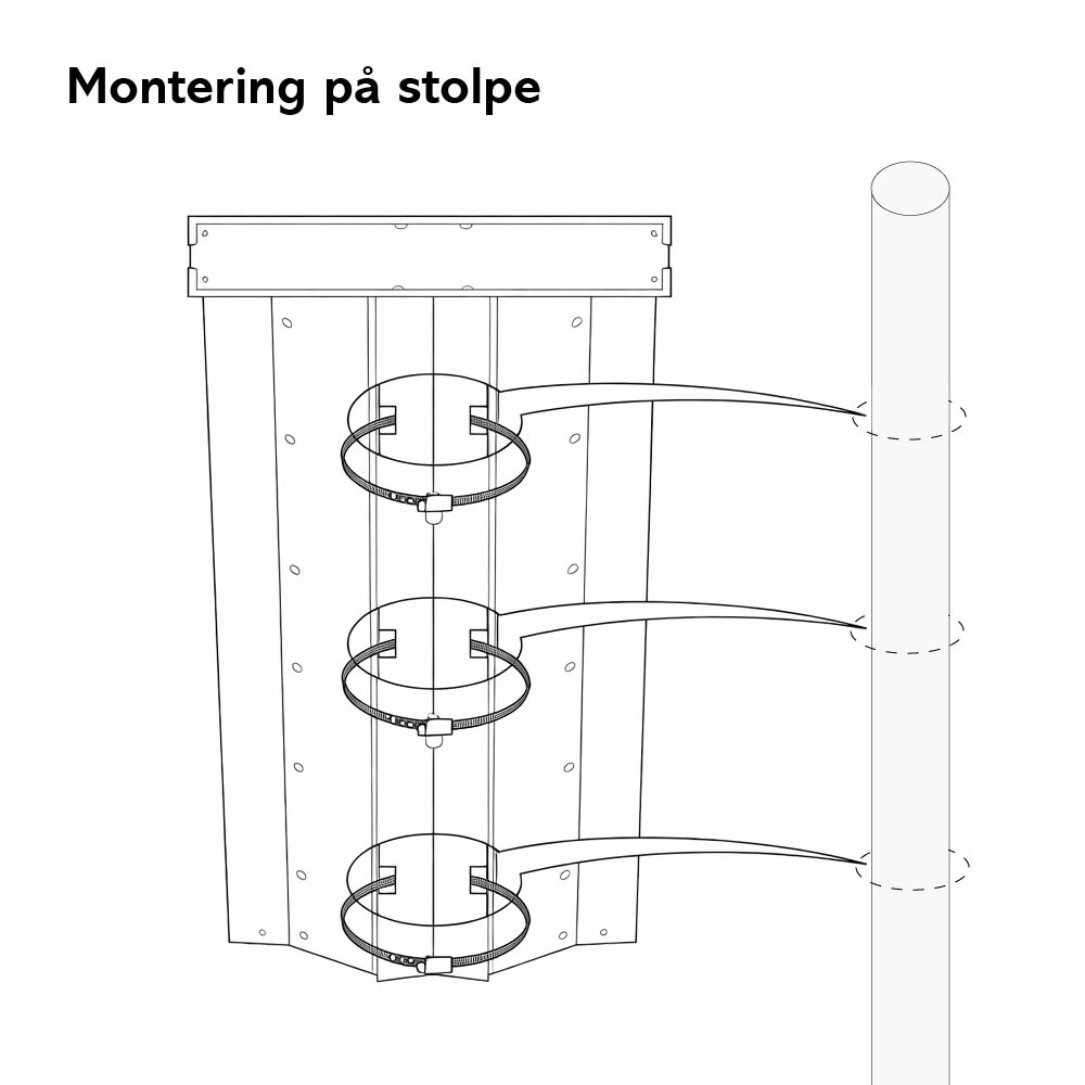 Klämmor för stolpe samt plugg och skruv medföljer
