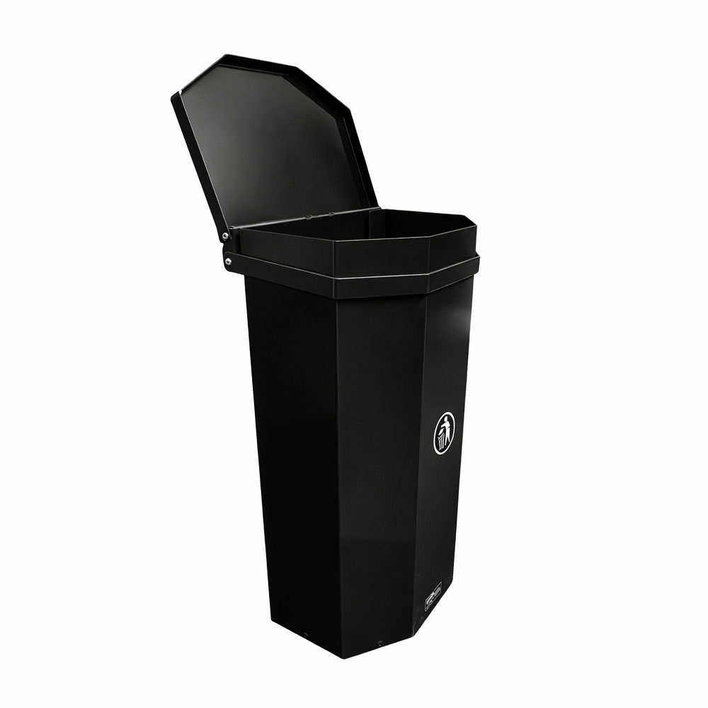 Om ni upplever problem med områden eller ytor där det för närvarande slängs avfall direkt på marken, utgör detta en utmärkt lösning på problemet. Denna papperskorg med lock minskar också risken för att fåglar och andra skadedjur ska komma åt avfallet. Det mest fördelaktiga är att ni inte behöver någon befintlig monteringsrör eller stolpe på plats: detta paket är komplett och monteras upp på plats där behovet av sophantering finns.
