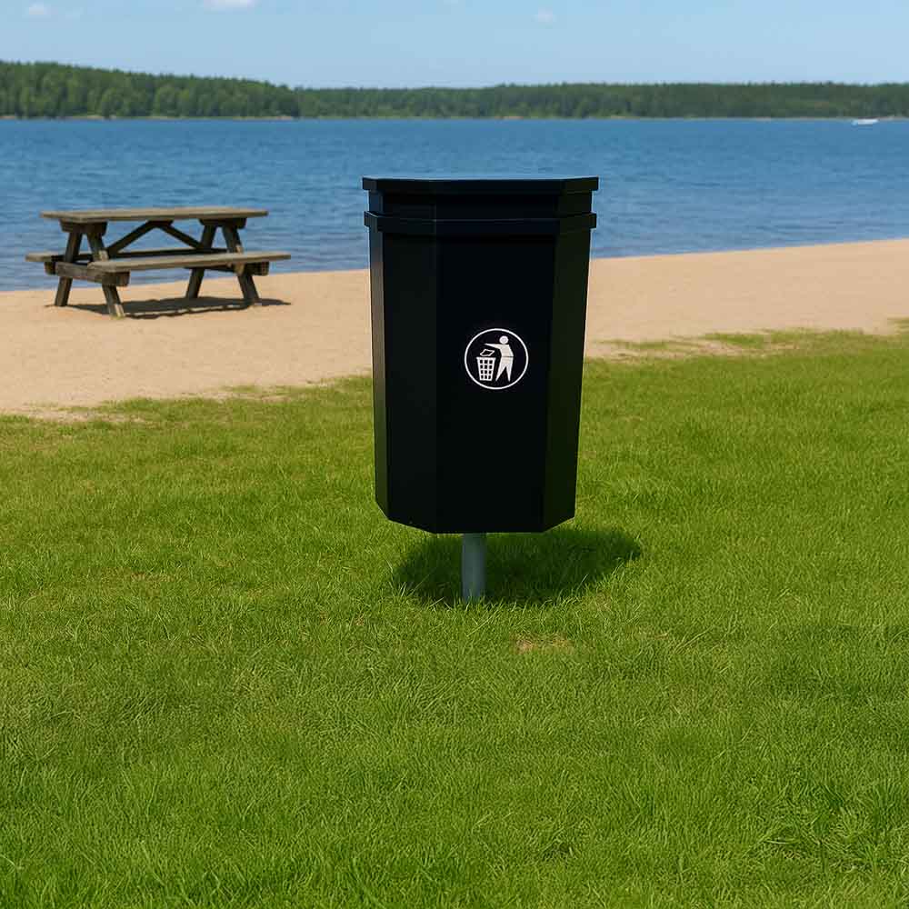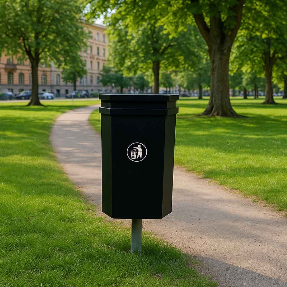 Papperskorg Parken 60 liter i svart färg för montering på stolpe eller vägg