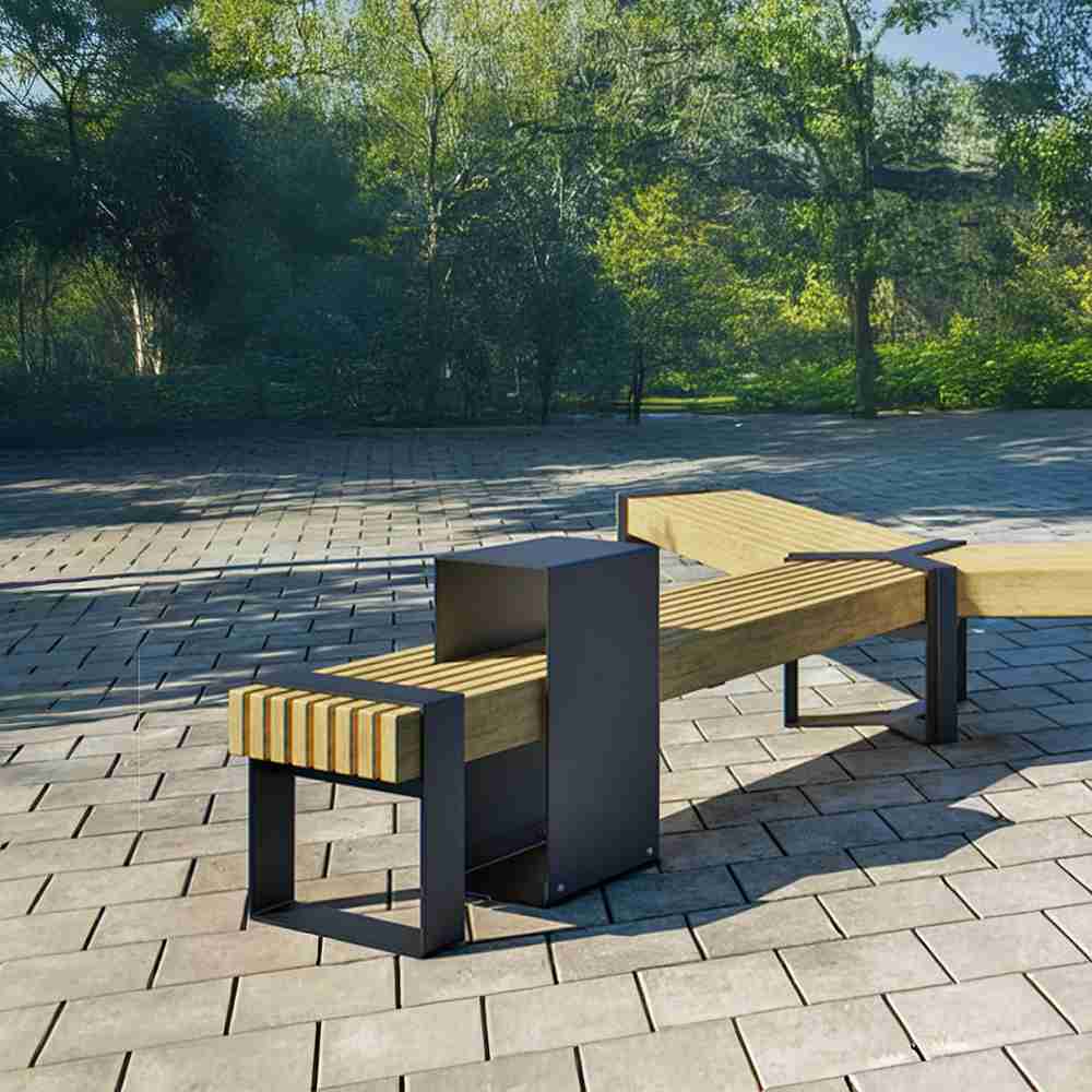 3-grenad Momentum-parkbänk – sittlösning för större offentliga ytor