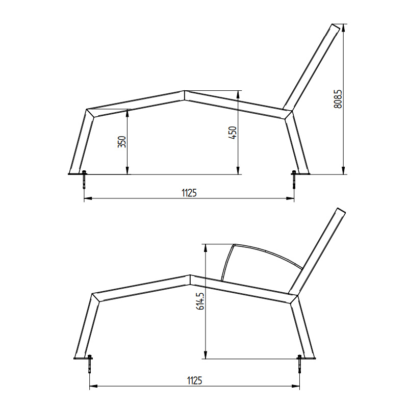 Konstruktionen består av en stabil stomme i zinkgrundat och pulverlackerat stål. Sits och rygg är tillverkade i vikt stålplåt med 2 mm godstjocklek, galvaniserade för lång livslängd och motståndskraft mot väder och slitage.