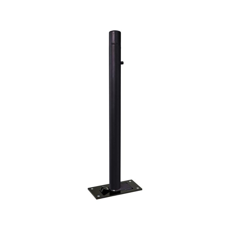 Låsmekanismen är både förzinkad och målad svart för en hållbar och diskret finish. Enkel installation genom att förankra den direkt i marken med medföljande fäststänger. För områden nära kusten rekommenderar vi ytterligare väderbehandling för stålkonstruktionen.