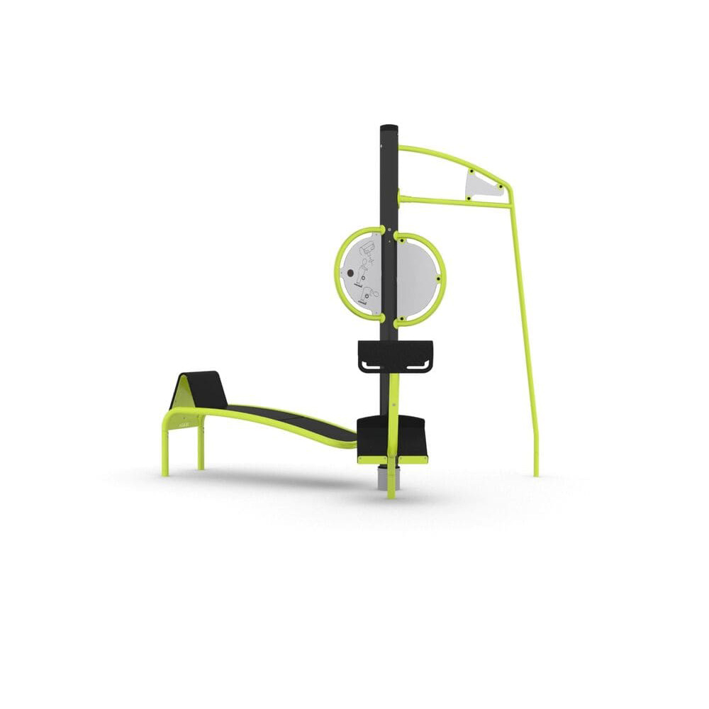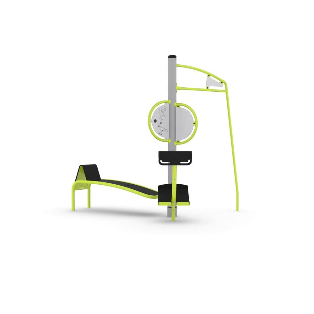 Bico Multi-Fitness Station finns i flera olika färger och är ett smart och yteffektivt utomhusgym. Detta gym utomhus innefattar tre populära övningar i en och samma konstruktion: rygglyft, situps och chinups. Här kan besökare få nästan hela kroppen tränad. Tack vare Gym Bicos design kan flera träna samtidigt och stärka överkroppen, mage och lår på ett enkelt och roligt sätt. Detta utomhusgym är tacksamt att anlägga vid parken eller stranden tillsammans med flera av våra andra utegymsprodukter.