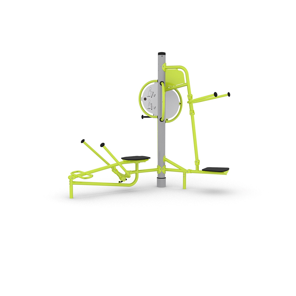 Tibas multi-fitness station erbjuder tre effektiva träningsmoment i en och samma utrustning: dips, handcykel och rodd. Tack vare kroppsviktsbaserad träning får användarna en skonsam men kraftfull helkroppsträning där armar, bröst, rygg och hjärta aktiveras samtidigt.